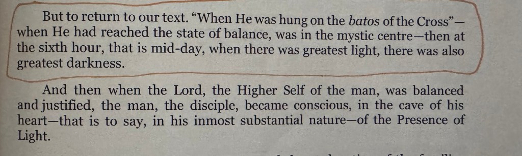 is not suffering physically is positioned above the event experiences crucifixion as a misperceived shadow
