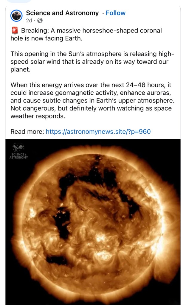 Why do I ask? WellâŚall this info came in this morning while thinking of this âhorseshoeâ shape the Sun made